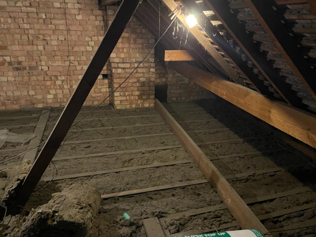 Before photo of loft insulation installation funded by LADS government energy-efficiency scheme.