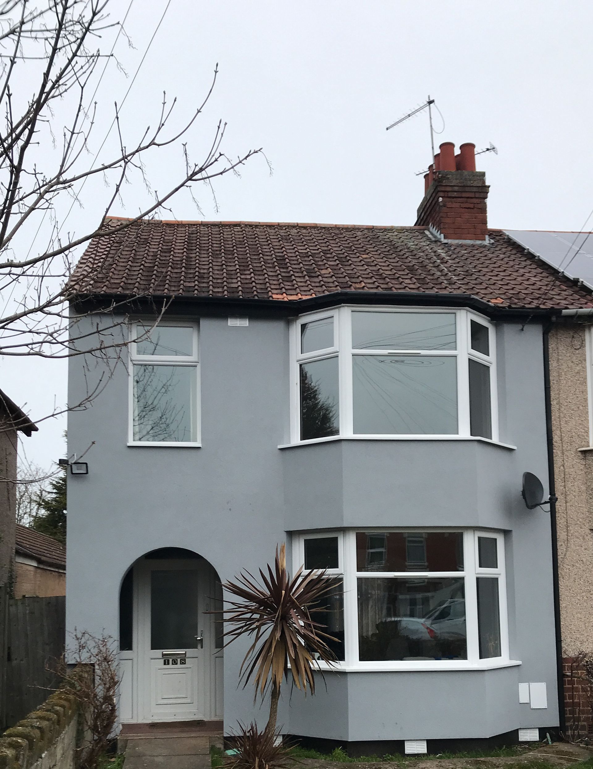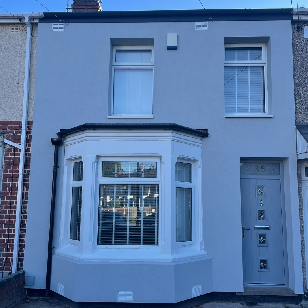 After photo of a transformed property with External Wall Insulation and smooth render funded by government energy-efficiency scheme.