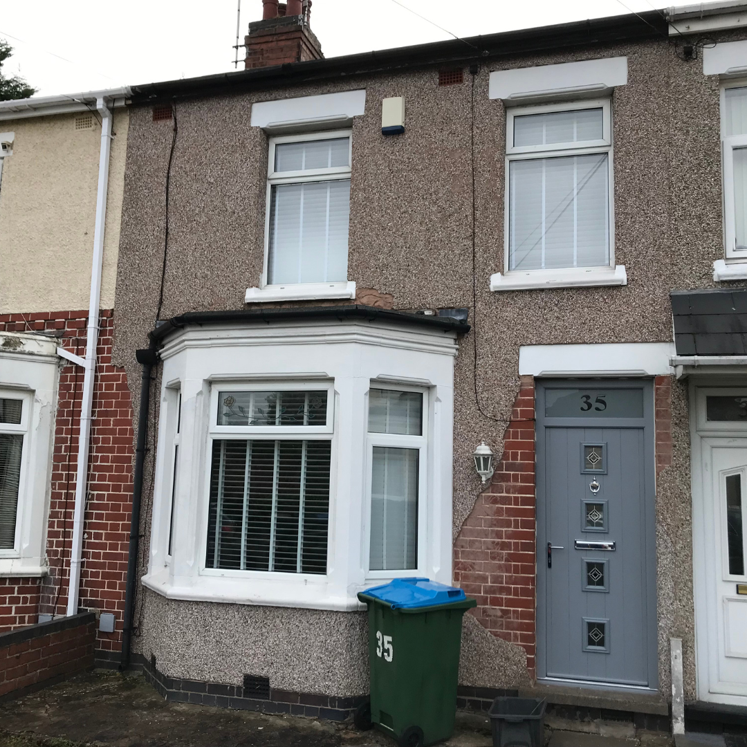 After photo of transformed property with brick render through LADS government funding scheme.